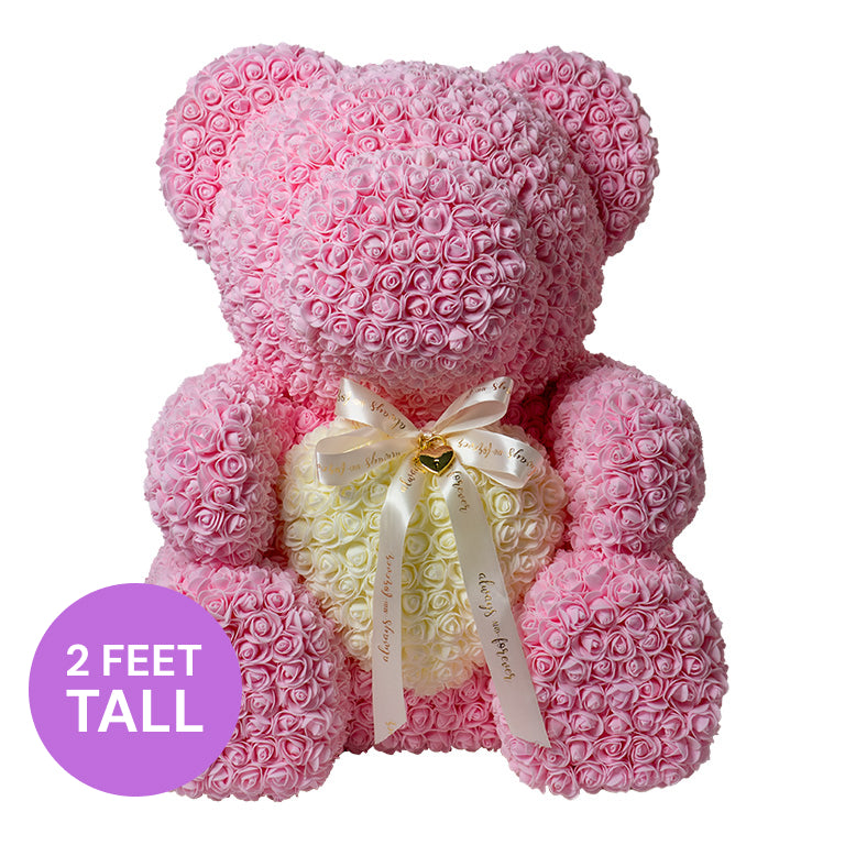 Extra Large Flower Animal - Pink Bear with White Heart