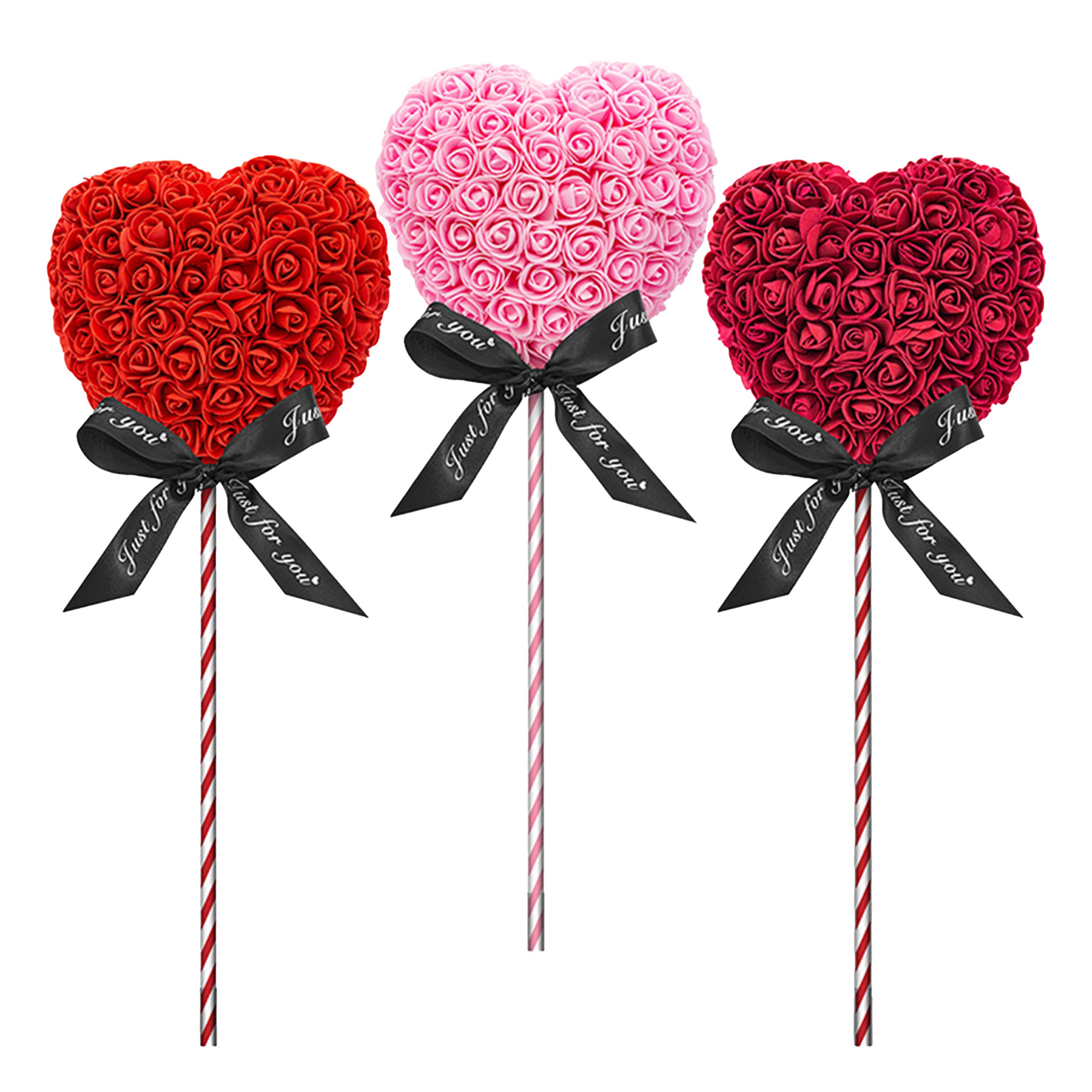 Send a unique and elegant gift, carefully shaped from red faux roses into a heart lollipop design. Whether it's a thoughtful surprise for a special someone, a unique decoration to brighten a room, or a whimsical favor for parties and events.