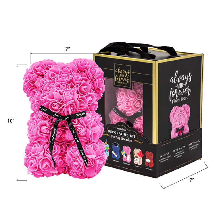 Flower bear with decorating kit accessories in an elegant box marked "Always and Forever." Perfect for personalizing gifts for anniversaries, birthdays, graduations, Christmas, Valentine’s Day, and other special occasions or decoration. A thoughtful gift that lasts forever.