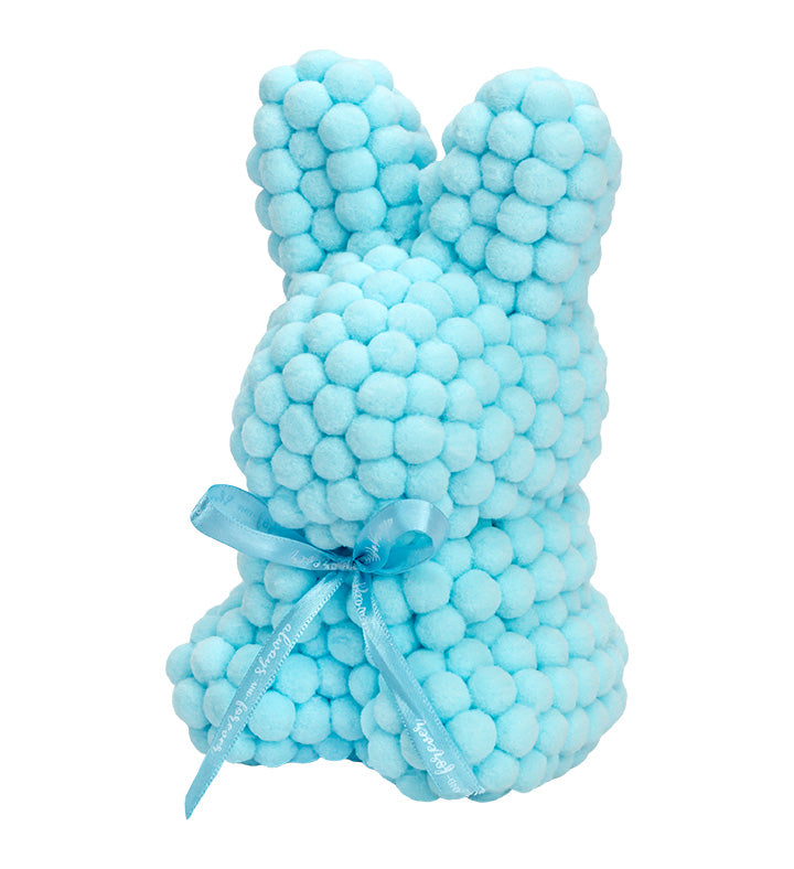 Send a unique and elegant gift, carefully shaped from blue pom poms into a gorgeous bunny. A delightful creation that captures the softness and charm of a cloud.